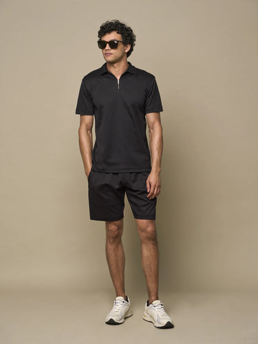 VALENZA - SUPIMA POLO ZIP COLLAR S/S - BLACK